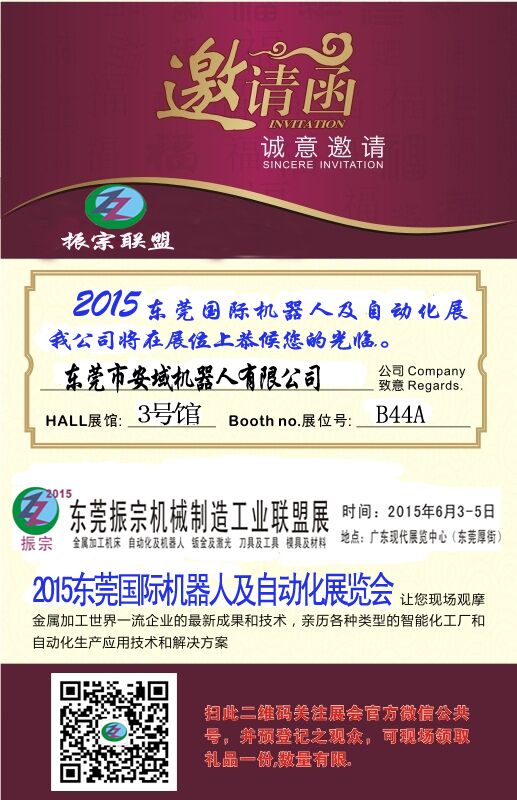 6月3號到5號,本公司于廣東現代展覽中心3號館B44A參加機器人展覽會,歡迎前來參加,