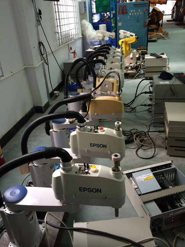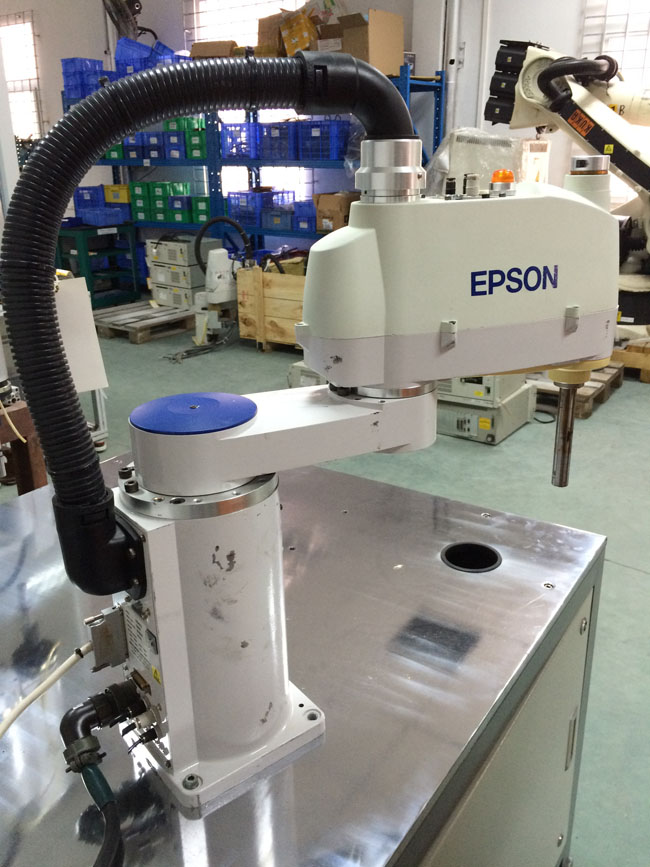 品牌:愛普生 epson類型:水平四軸負載:5kg半徑:450mmZ軸:170mm控制器:RC420/RC520出廠年份:2005-2007年左右產地:日本適合工作:沖床上下料、視覺檢測、視覺分類、涂膠等工作